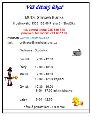 pozor, Sledujte, trvale změna ordinačních hodin v pátek ve Stodůlkách